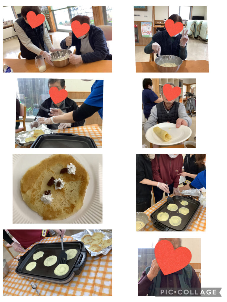 そして、最近の花水木の様子です。クレープクッキングをしました♪皆さん手伝ってくださり賑やかに美味しく頂きました☆