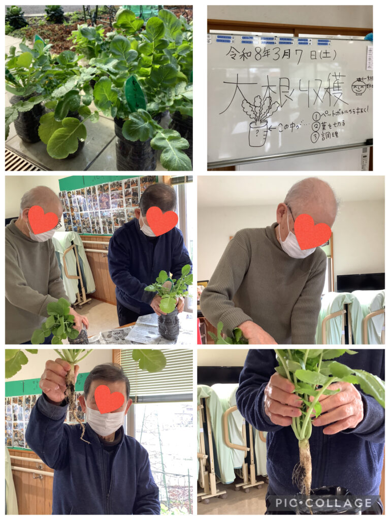 煮染めクッキングも行いましたよ!そして、あのペットボトル大根の収穫も行いました!植え時期が遅かったので大根は小さかったですが、葉っぱは生き生きと良い色で、葉っぱ🌱の油炒めをし、昼食の🍚ごはんの上にのせて美味しく頂きました😆とても美味しかったですよ。次は春大根を植えてみようと思います!