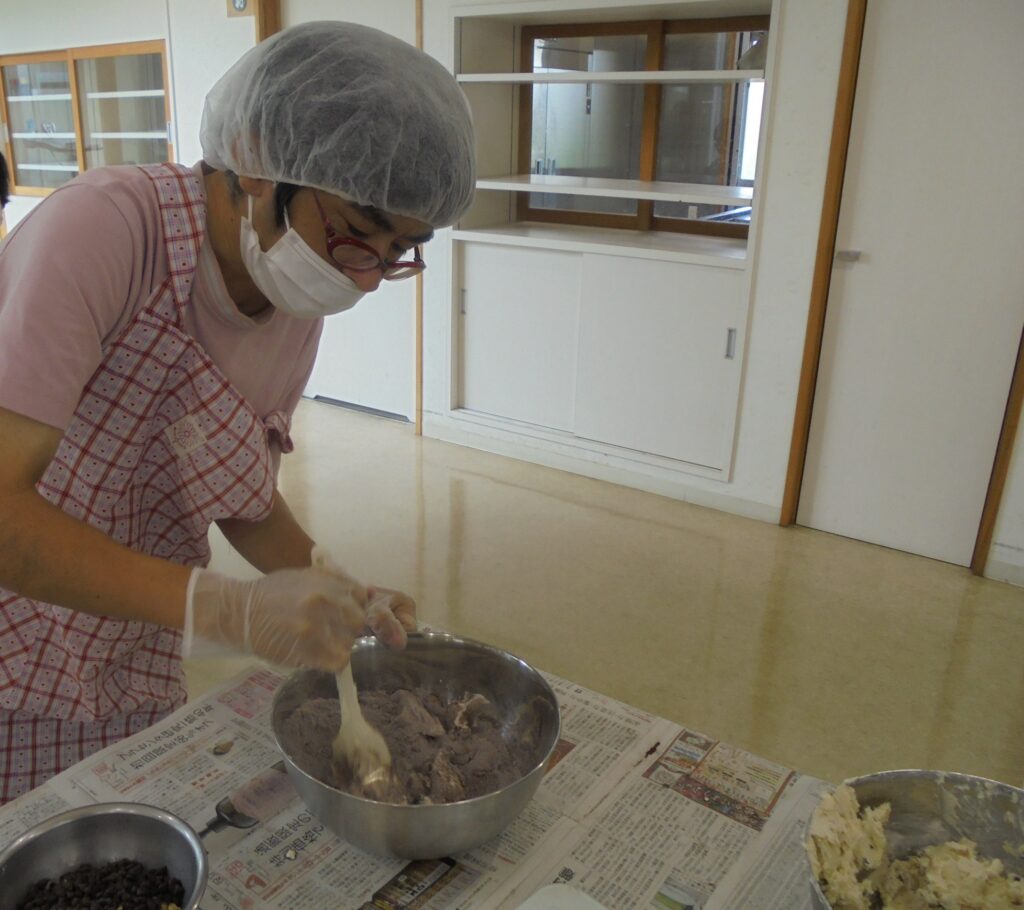 プロのパティシエさんにボランティアで来ていただき一緒にクッキーを作りました。粉などの材料計量、ハンドミキサーで生地を混ぜるなど様々な工程に笑顔で挑戦される利用者さんの姿が印象的でした。出来上がったクッキーは午後の休憩時間にいただきました!「コーヒーと合うね!」「おいしいね!」と会話もはずみ楽しいひと時となりました。